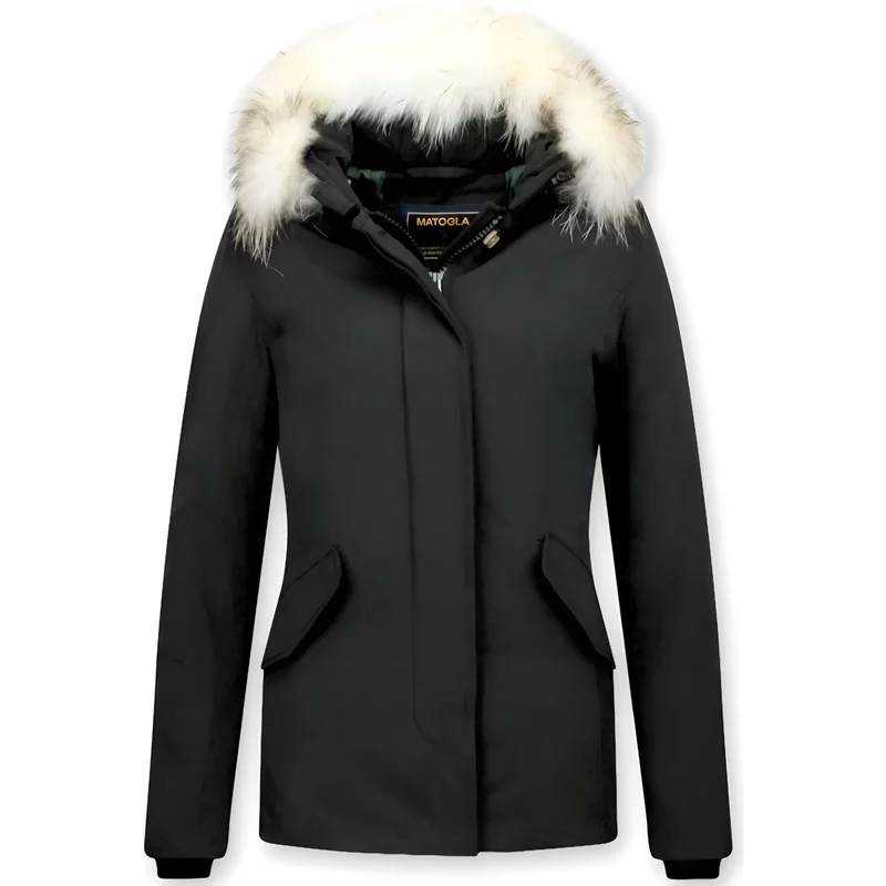 Matogla Korte winterjas met witte echte bontkraag