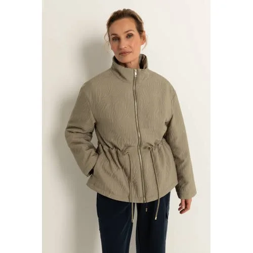 Deze middellange lichtkaki tussenjas van Claudia Sträter is een praktische basis voor frisse lentedagen. De jas heeft een rustige, effen uitstraling, terwijl de subtiele jacquardstructuur voor extra diepte in de stof zorgt. De opstaande kraag en rechte mouwen geven een verzorgde look, of je de jas nu draagt op weg naar werk of tijdens een wandeling in het weekend.Functionele details met een vrouwelijke lijn Middellange tussenjas, geschikt voor het lenteseizoen Lichtkaki kleur die gemakkelijk combineert met je garderobe Jacquardstructuur voor een verfijnde, rustige textuur Opstaande kraag voor een nette en beschutte hals Ritssluiting over de hele lengte voor snel aan- en uittrekken Tunnelkoord in de taille om de pasvorm subtiel te tailleren Rechte mouwen voor een tijdloos silhouet Steekzakken aan de voorkant voor kleine essentials Gemaakt van een soepele, gladde stof die prettig aanvoeltLichte jas voor dagelijkse momentenDeze jas past goed bij alledaagse outfits. Over een blouse met een nette broek of gewoon met een T-shirt en jeans, de lichtkaki kleur sluit mooi aan bij zachte en neutrale tinten. De middellange lengte maakt de jas geschikt voor op de fiets en voor onderweg in de stad.Maura by Claudia SträterDe Maura lijn van Claudia Sträter focust op vrouwelijke, moderne items die je makkelijk combineert. Met oog voor pasvorm en doordachte details biedt het merk kleding waar je op kunt rekenen, seizoen na seizoen. Deze jas past in die visie: stijlvol, draagbaar en ontworpen voor dagelijks gebruik.Een praktische tussenjas die je garderobe rustig en verzorgd aanvult.