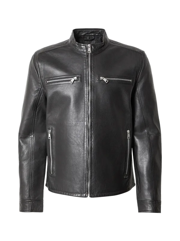 Design: Rechte zoom, Staande kraag, Borstzak, Ritszakken aan de zijkant; Type sluiting: Ritssluiting; Type jas: Bikerjack; Voering: Licht gevoerd; Materiaal: Leer; Motief: Effen; Extra's: Op staal naden, Gladde stof; Pasvorm: Normale pasvorm