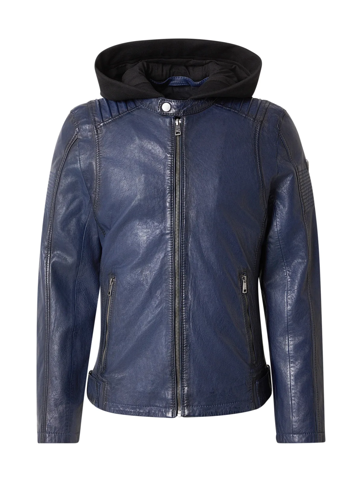 Design: Afneembare capuchon, Ritszakken aan de zijkant; Type sluiting: Ritssluiting; Type jas: Bikerjack; Voering: Licht gevoerd; Materiaal: Leer; Motief: Effen; Extra's: Gewatteerde rand, Stevige stof; Pasvorm: Normale pasvorm