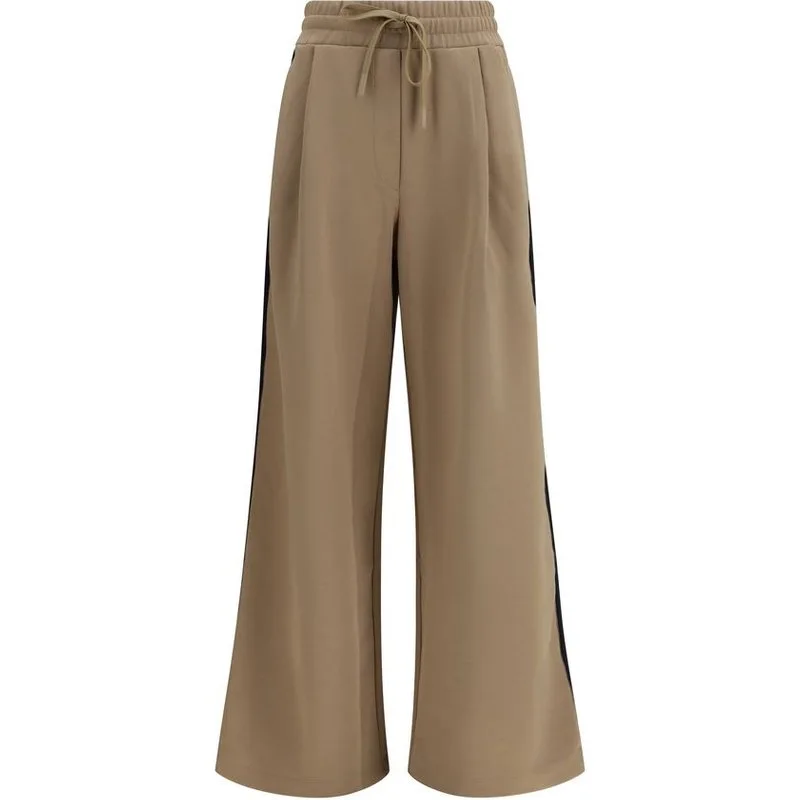 De Perdoni-broek van Weekend Max Mara is gemaakt van katoenjersey en heeft voorplooien die de silhouet vormen. Ze zijn ontworpen met een wijde pijp en ivoorkleurige en zwarte zijbanden voor een hedendaagse grafische uitstraling. De middelhoge taille heeft een elastische band met verstelbare trekkoorden, terwijl de zijzakken met paspel het functionele ontwerp compleet maken. Regular fit. Seizoen: SS26 Pasvorm: Regular Samenstelling: 72% Katoen 28% Polyester
