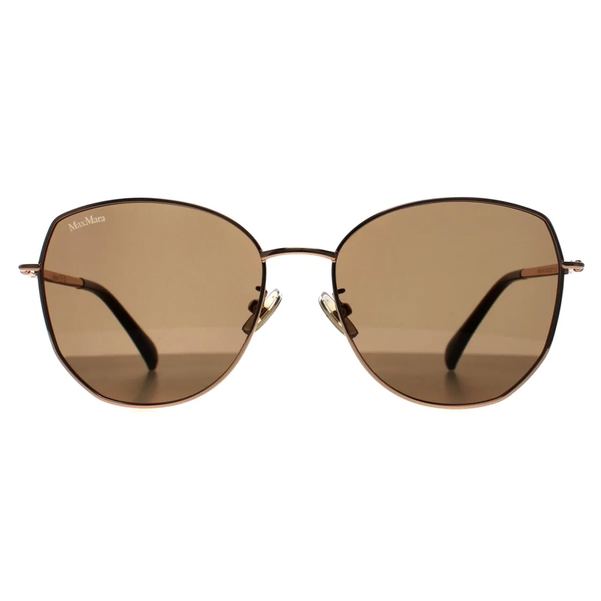 De Max Mara Round Womens Gold Brown MM0114-K zonnebril heeft een verfijnd rond metalen montuur dat tijdloze elegantie uitstraalt. Deze zonnebril is ontworpen voor de moderne vrouw en is voorzien van slanke buisvormige poten versierd met het Max Mara-logo. Dit voegt een vleugje verfijning toe en maakt het een veelzijdig accessoire dat moeiteloos elk ensemble verbetert.