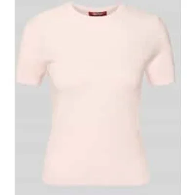 Gebreid damesshirt van Max Mara Studio;Model 'Mstlepre';Look: effen;Pasvorm: Regular fit ;Applicatie: Mini-pailletten;Hals: ronde hals;Mouwvorm: korte mouwen;Mouwboord: geribd;Rompzoom: geribd;Materiaalverwerking: Fijn gebreid;Materiaal: Mix van zijde en wol