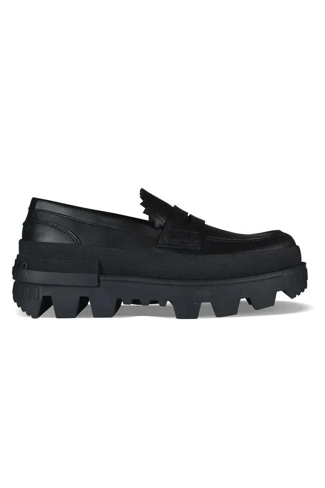 Moncler loafers, Maxence model in zwart leer.Slip-on model.Tong met gekerfde afwerking.Hiel met Moncler rubberen letters.Gekerfde zool met rubberen logo.Dikte van de zool: 6,8 cm.100% leer.Gemaakt in Italië.
