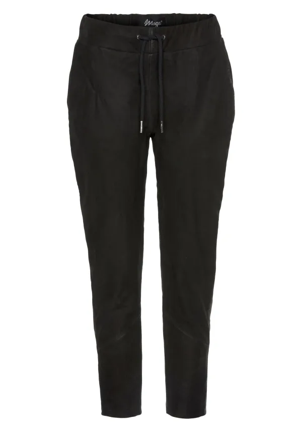 Design: Gevoerde zoom/rand, Wijde taille, Taille met trekkoord, Zakken aan de zijkant; Materiaal: Leer; Motief: Effen; Details: Gedrapeerd; Extra's: Op staal naden, Vaste grip, Nappaleer; Lengte: 7/8 lengte; Pasvorm: Slimfit; Taillehoogte: High waist
