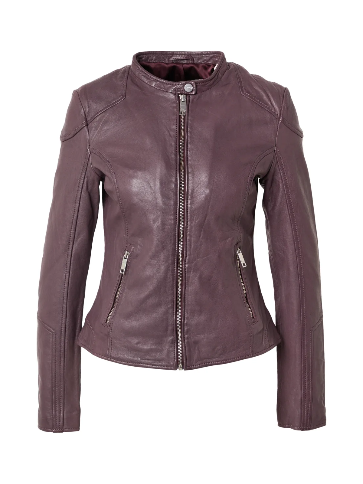 Design: Drukknopsluiting, Ritszakken aan de zijkant; Type sluiting: Ritssluiting; Type jas: Bikerjack; Voering: Licht gevoerd; Materiaal: Leer; Motief: Effen; Extra's: Op staal naden, Stevige stof; Pasvorm: Slanke pasvorm