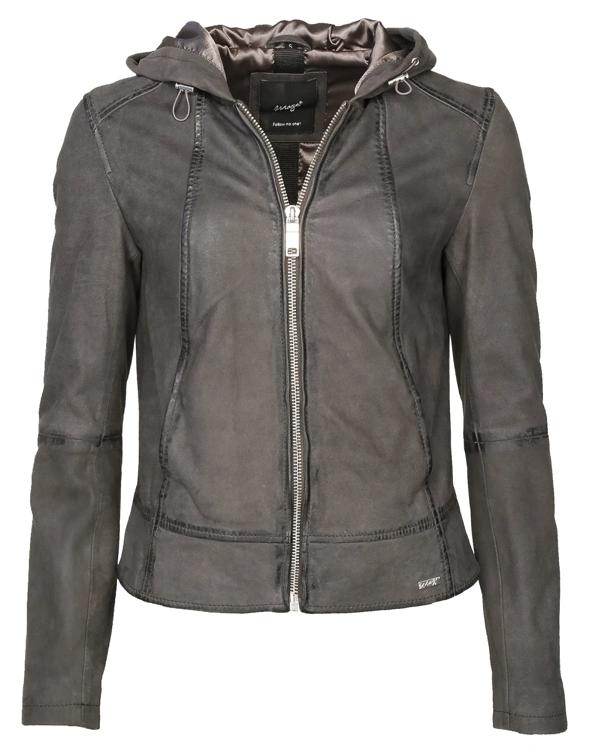 Design: Ritssluiting, Met capuchon, Getailleerd model, Binnenzak, Zakken aan de zijkant; Type sluiting: Ritssluiting; Voering: Licht gevoerd; Materiaal: Leer; Motief: Effen; Extra's: Label plaatje, Nappaleer, Lamsleer; Pasvorm: Slanke pasvorm