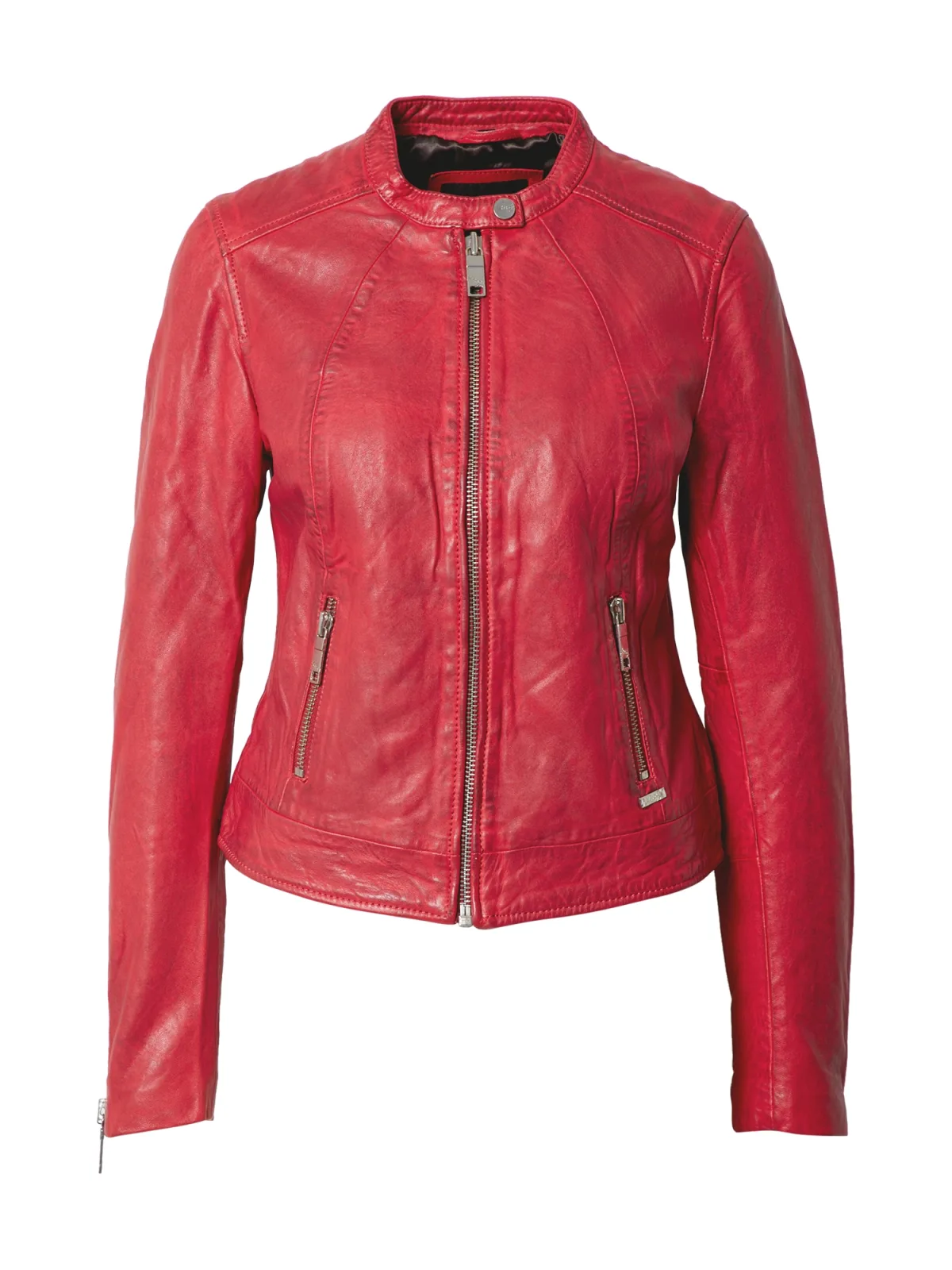 Design: Drukknopsluiting, Ritssluiting, Mouw rits, Rechte zoom, Staande kraag, Getailleerd model, Deelnaden, Ritszakken aan de zijkant; Type sluiting: Ritssluiting; Type jas: Bikerjack; Voering: Licht gevoerd; Materiaal: Leer; Motief: Effen; Extra's: Label plaatje, Op staal naden, Gladde stof; Pasvorm: Slanke pasvorm