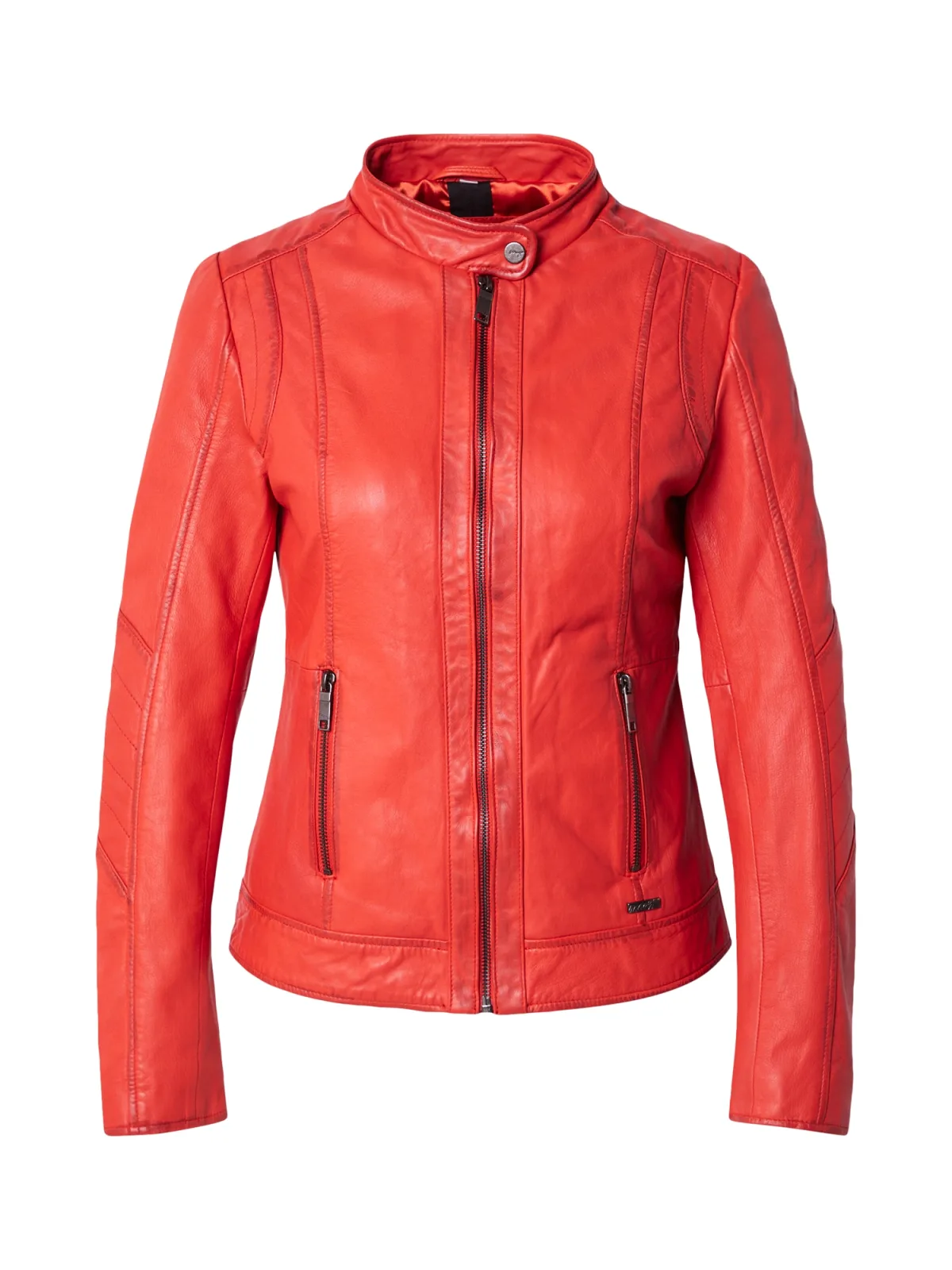 Design: Drukknopsluiting, Rechte zoom, Staande kraag, Ritszakken aan de zijkant; Type sluiting: Ritssluiting; Type jas: Bikerjack; Voering: Licht gevoerd; Materiaal: Leer; Motief: Effen; Extra's: Label plaatje, Op staal naden, Gladde stof; Pasvorm: Slanke pasvorm