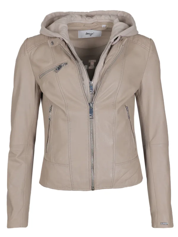 Design: Afneembare capuchon, Capuchon met trekkoord, Gelaagde look, Borstzak, Ritszakken aan de zijkant; Type sluiting: Ritssluiting; Type jas: Bikerjack; Voering: Licht gevoerd; Materiaal: Leer; Motief: Effen; Extra's: Op staal naden, Metalen oogjes; Pasvorm: Slanke pasvorm