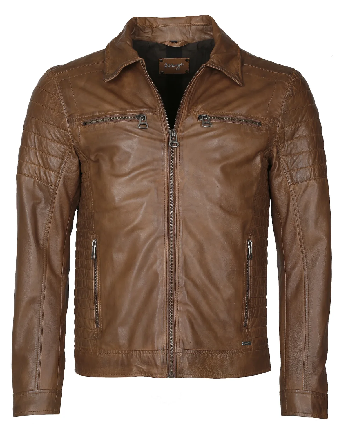 Design: Ritssluiting, Borstzak, Ritszakken aan de zijkant; Type sluiting: Ritssluiting; Type jas: Bikerjack; Voering: Licht gevoerd; Materiaal: Leer; Motief: Effen; Extra's: Gewaxt, Stiksels, Lamsleer; Pasvorm: Normale pasvorm