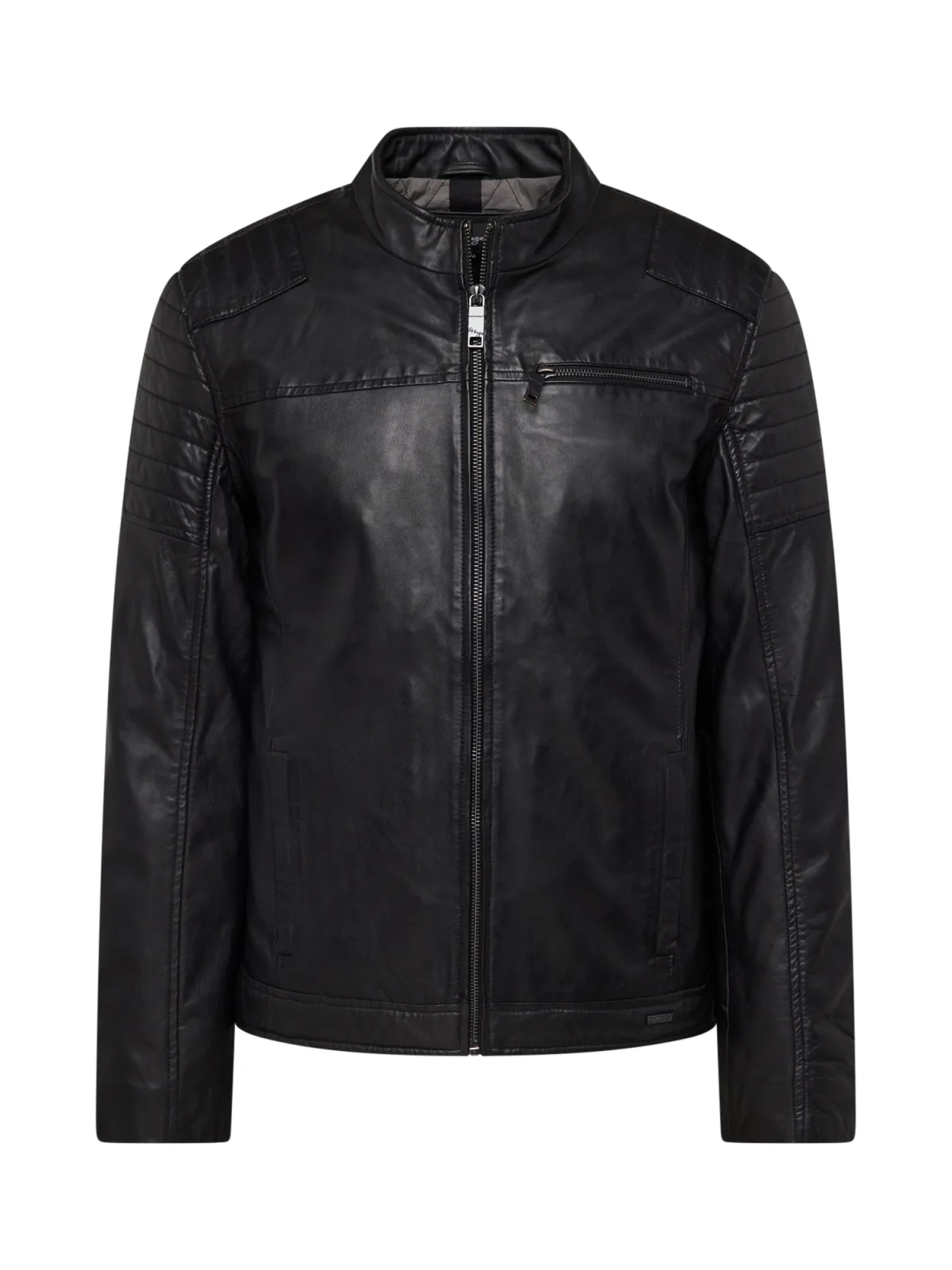 Design: Ritssluiting, Recht model, Staande kraag, Borstzak, Rits zak, Zakken aan de zijkant; Type sluiting: Ritssluiting; Type jas: Bikerjack; Voering: Licht gevoerd; Materiaal: Leer; Motief: Effen; Extra's: Op staal naden, Gladde stof, Lamsleer; Pasvorm: Normale pasvorm