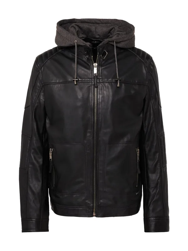 Design: Ritssluiting, Capuchon met trekkoord; Type sluiting: Ritssluiting; Type jas: Bikerjack; Voering: Licht gevoerd; Materiaal: Leer; Motief: Effen; Extra's: Gladde stof; Pasvorm: Normale pasvorm