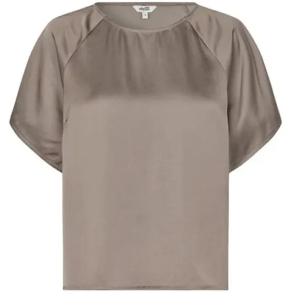 Productomschrijving T-shirt met ronde hals van het merk MbyM. Het shirt heeft een losse fit en een prachtige satijn look. Stofsamenstelling: 54% Polyester, 46% Viscose. Pasvorm: valt normaal. Twijfel je over de maat? Neem contact met ons op en we helpen je graag verder!