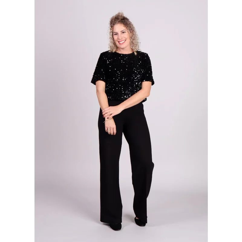 Als je op zoek bent naar een pantalon die zowel stijlvol als supercomfortabel is, dan is de zwarte pantalon Seenta van mbyM precies wat je nodig hebt! Deze mooie basic is de ideale aanvulling voor je garderobe, met een elastische tailleband voor een geweldige fit en een verborgen ritssluiting aan de zijkant die zorgt voor een strakke, moderne uitstraling. De zwarte Seenta pantalon biedt je het beste van beide werelden: stijl en comfort in één. Deze zwarte pantalon is super veelzijdig en makkelijk te combineren. Dress it up met een mooie blouse en hakken voor een avondje uit, of houd het casual met een fijne trui en sneakers voor elke dag. Je kunt eindeloos variëren! Product details: Elastische tailleband: Voor extra comfort en een perfecte pasvorm Verborgen ritssluiting: Voor een strakke look zonder zichtbare ritsen – gewoon chic en elegant. Valt normaal op maat