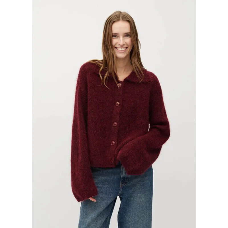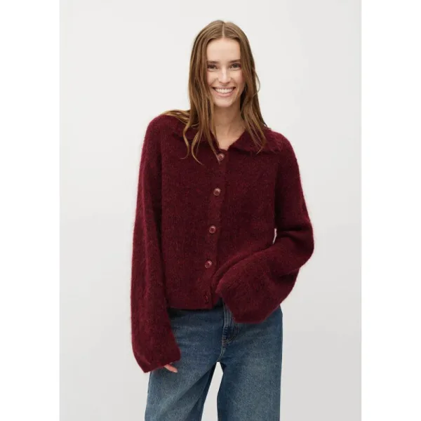 De Larya-M van mbyM is een tijdloos gebreid vest dat comfort en eenvoud moeiteloos combineert. Dit bordeauxrode vest is vervaardigd uit een zachte wolmix met mohair en heeft een elegante kraag en knoopsluiting. De losse pasvorm en wijde mouwen geven het vest een nonchalante uitstraling, terwijl de warme textuur perfect is voor de koudere dagen. Draag het met een jeans voor een casual look of combineer het met een rok voor een vrouwelijke touch. Product details: Merk: mbyM Model: Larya-M Kleur: Bordeaux Knoopsluiting aan de voorzijde Klassieke kraag Lange, wijde mouwen Losvallende pasvorm Materiaal: 33% nylon, 32% wol, 32% mohair, 3% elastaan Valt normaal op maat Het model is 178 cm en draagt maat XS/S