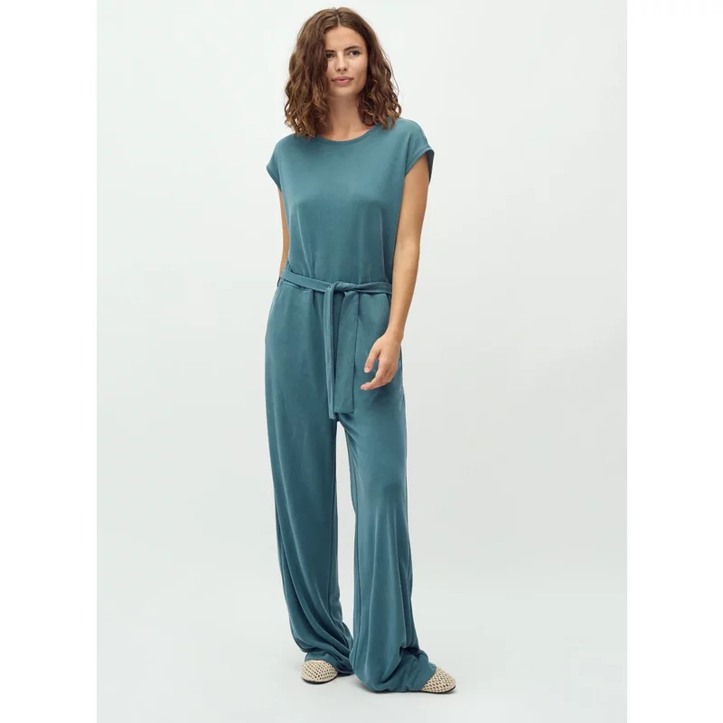 Voeg moeiteloze elegantie toe aan je garderobe met de mbyM Loosey-M jumpsuit in blauw. Deze stijlvolle jumpsuit is gemaakt van een zachte, soepele lyocellmix en heeft een flatterende pasvorm met korte mouwen, een ronde halslijn en een strikceintuur in de taille. De wijde pijpen zorgen voor een relaxed silhouet, terwijl de knoopsluiting aan de achterkant zorgt voor een verfijnd detail. Perfect voor zowel casual als geklede gelegenheden – draag 'm met sandalen voor overdag of met hakken voor een avondlook. Kenmerken: Merk: mbyM Modelnaam: Loosey-M Kleur: Blauw Materiaal: 80% lyocell, 20% polyester Pasvorm: Losvallend met strikceintuur Mouwen: Korte mouwen Pijpen: Brede, lange pijpen Sluiting: Knoop aan de achterkant Stijl: Comfortabel, vrouwelijk en veelzijdig