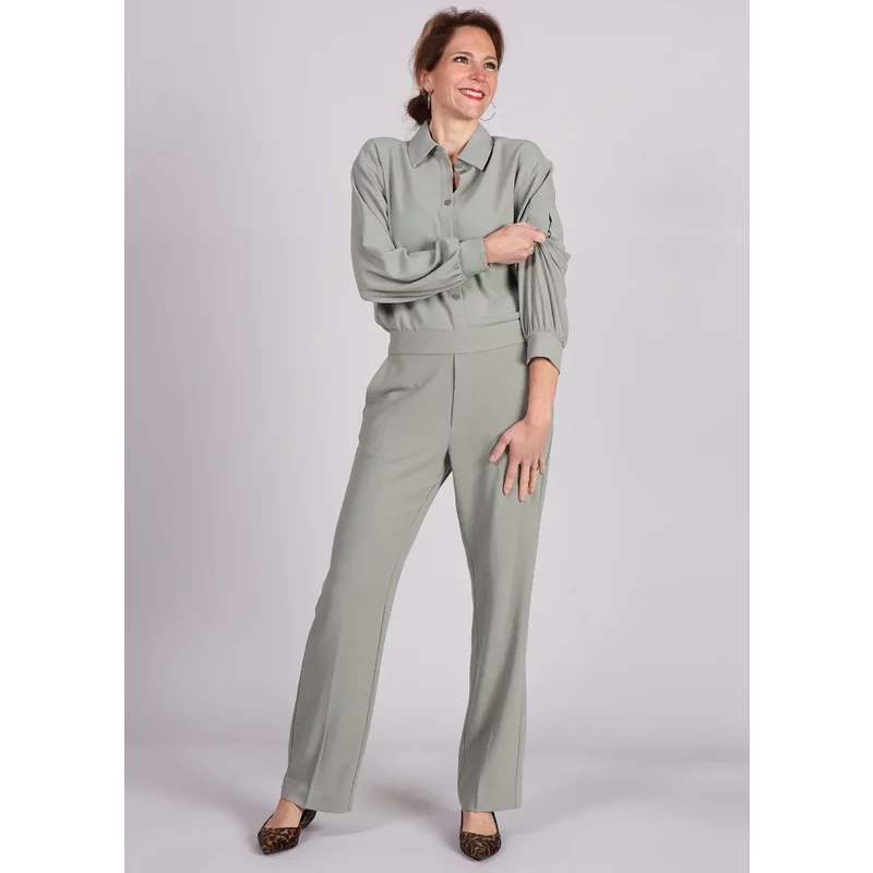 De mbyM Nina-M broek is een stijlvolle en comfortabele broek met een rechte pasvorm en een elastische tailleband aan de achterkant voor een moeiteloze fit. Gemaakt van een hoogwaardige mix van polyester en elastaan, biedt deze broek een soepel silhouet en een flatterende uitstraling. De zijzakken voegen functionaliteit toe, terwijl de subtiele plooien aan de voorzijde een verfijnde touch geven. Perfect te combineren met de bijpassende Cammia blouse voor een mooie ton-sur-ton look of met een casual top voor een relaxte outfit. Product details: Merk: mbyM Kleur: Groen Materiaal: 95% polyester, 5% elastaan Pasvorm: Rechte broek Taille: Elastiek aan de achterkant voor extra comfort Zijzakken en subtiele plooien aan de voorzijde Valt normaal op maat Het model is 176 cm lang en draagt maat S