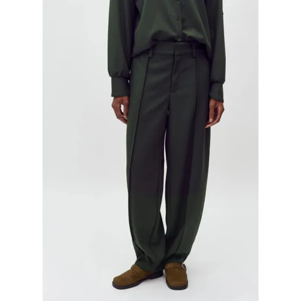 De mbyM Pija-M pantalon in Pine Green geeft een moderne draai aan klassieke tailoring. Deze donker groene pantalon is uitgevoerd met een opvallend ballon-effect: wijd bij de benen en licht toelopend aan de onderkant. De broek is gemaakt van een comfortabele mix met linnen en heeft een middelhoge taille, lange lengte en handige steekzakken. Combineer met de bijpassende blouse voor een ton-sur-ton look of draag de donkergroene pantalon casual met een losvallende trui. Product details: Merk: mbyM Model: Pija-M Kleur: Pine Green (donkergroen) Middelhoge taille Ballon-effect pijpen Lange lengte Steekzakken aan de zijkant Riemlussen Materiaal: 85% polyester, 12% linnen, 3% elastaan Artikelnummer: 62950689 Het model is 176 cm lang en draagt maat S