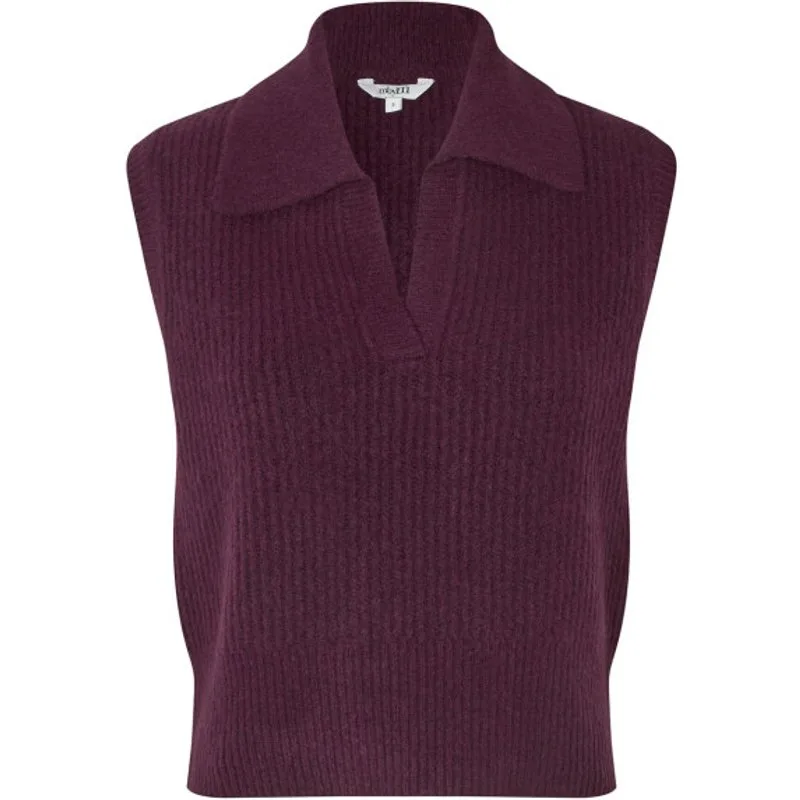 De mbyM Ritika-M spencer in bordeauxrood is een stijlvolle en veelzijdige toevoeging aan je herfst- en wintergarderobe. Dit gebreide mouwloze vest heeft een diepe V-hals met klassieke kraag en is gemaakt van een zachte, warme wolmix met stretch. De ribstructuur en losvallende pasvorm zorgen voor een moderne, nonchalante look die perfect is om te layeren over een blouse of jurk. Product details: Merk: mbyM Model: Ritika-M Kleur: Bordeauxrood Materiaal: 51% Acryl, 36% Nylon, 7% Elastaan, 6% Wol Diepe V-hals met kraag Ribgebreide structuur Pasvorm: Loose fit Normale lengte Valt normaal op maat