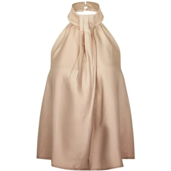 Satijnen top van het merk MbyM. De top sluit om de hals en heeft een lage rug. Stofsamenstelling: 48% viscose, 52% polyester Pasvorm: valt normaal. Twijfel je over de maat? Neem contact met ons op en we helpen je graag verder!