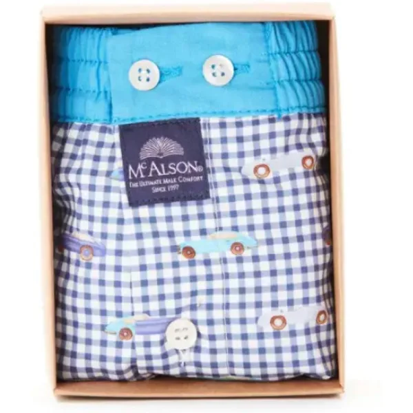 * Boxershort met de kenmerkende onzichtbare binnenondersteuning van McAlson; de perfecte combinatie van de elegantie van een boxer met het comfort van een slip. * Alle stoffen - inclusief de binnenversteviging - zijn gemaakt van geweven, zuivere katoenvezels. * Elastische tailleband met twee knopen. * Zijsplit en driedelige achterkant voor perfect comfort. * Tabblad met handtekening van McAlson op de voorkant. * Open gulp, sluit met één knoop.