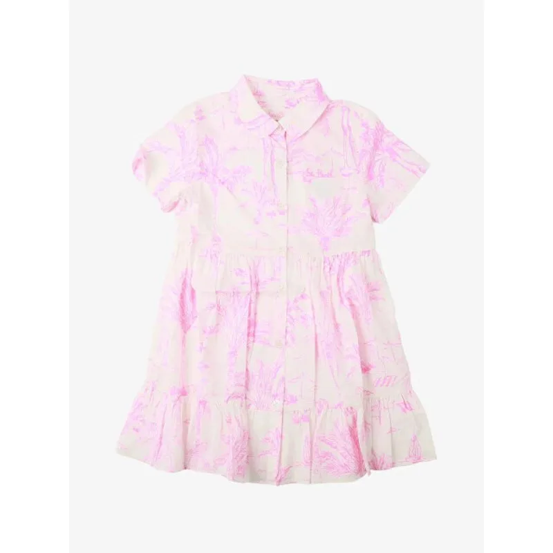 De Mc2 Saint Barth Junior Missy Jurk in de kleur Saint Beach is een katoenen jurk met uitlopende onderkant, knoopsluiting, korte mouwen en kraagje. Combineer met de bijpassende bikini.
