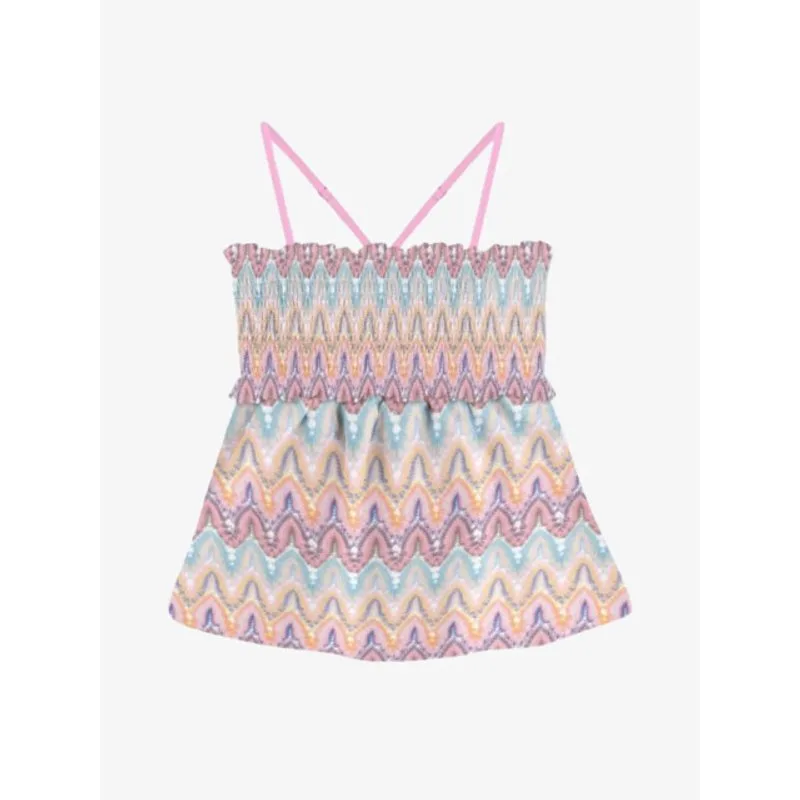 De Mc2 Saint Barth Irmine Top in de kleur Rachel Twist Pastel heeft een elastieke band aan de bovenkant. De top kun je perfect matchen met de bikini en broek.