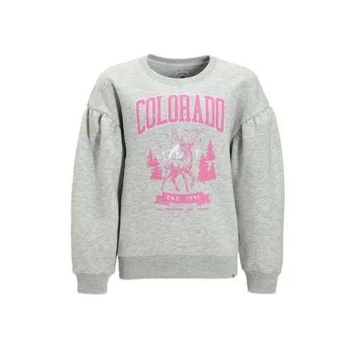Deze meisjes sweater van Me & My Monkey is een echte eyecatcher! Op de voorkant staat een mountainprint met de tekst ‘Colorado’, wat zorgt voor een speelse twist. De sweater heeft een ronde hals, pofmouwen en is gemaakt van een zachte katoenmix die comfortabel zit en makkelijk te combineren is.Details van deze sweater :ronde halspofmouwenColorado printgeribde boordencomfortabele katoenmixkleine split aan de achterkant