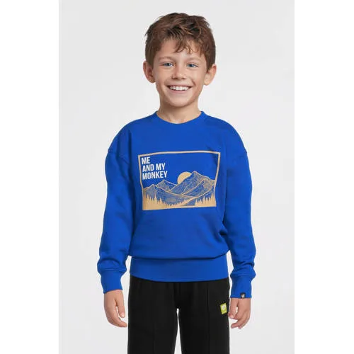 Me & My Monkey sweater met printopdruk blauw