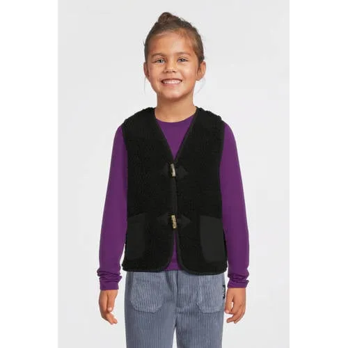 Dit teddy gilet voor meisjes van Me and My Monkey is gemaakt van polyester.Dit gilet heeft een houtje touwtje sluiting.Details van dit gilet:2 zakken op het voorpand