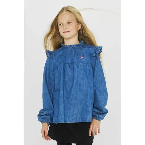 Deze top voor meisjes van Me and My Monkey is gemaakt van katoen. Dit model heeft lange mouwen, een opstaande kraag met ruffles en een klein borduursel.Details van deze top:Elastisches boord aan de mouwenOpstaande kraag met rufflesStiksel detail op schoudersChambray stof