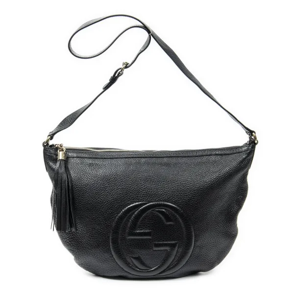 Gucci Tassen Medium Soho Hobo Schoudertas in de Zwart Kalfsleer in de Goud hardware. Het product is in In Uitstekende Staat (A). Afmetingen: 39x30x5 cm Inclusief accessoires: None Opmerkingen over de binnenkant: Lichte vuilvlekken onder de rits BrandCo Paris vindt zeldzame artikelen in de beste staat voor ongelooflijke prijzen. Het is de moeite waard om geduldig te zijn! Koop met vertrouwen: alle artikelen van BrandCo Paris worden zorgvuldig geselecteerd en geverifieerd door ons team van experts. Alle artikelen worden geleverd met een certificaat van echtheid en verpakt door BrandCo Paris. Classificatietabel voor de conditie van het artikel: N (als nieuw) AA (perfecte staat) A (uitstekende staat) AB (zeer goede staat) B (goede/redelijke staat)