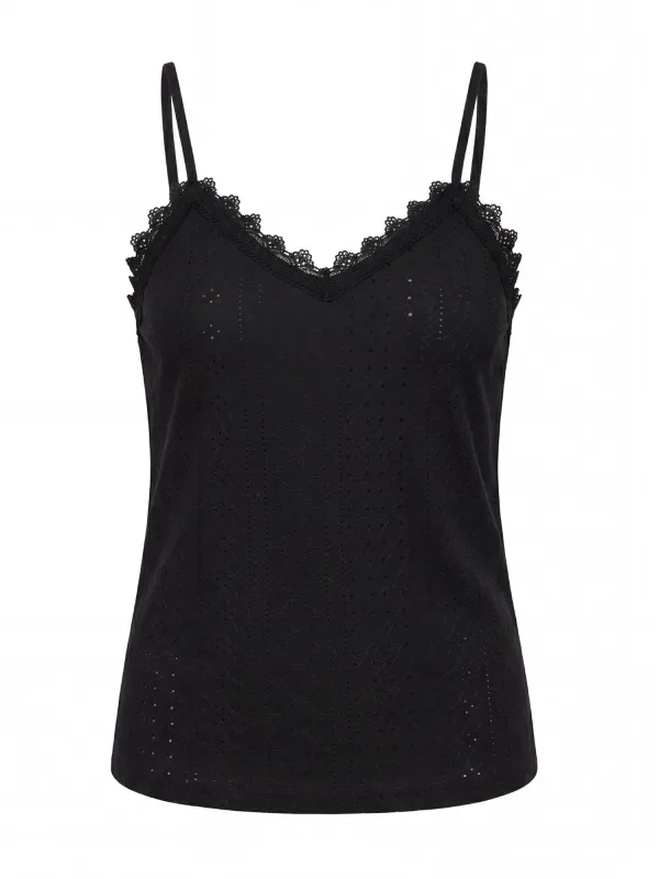 MEETWEE Top ‘V-neck summer lace vest’ zwart