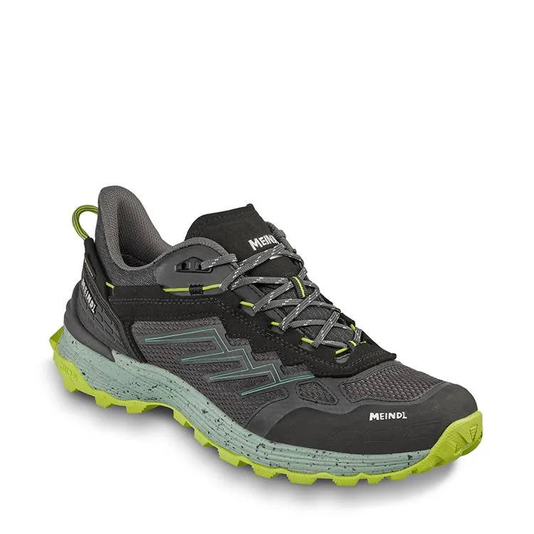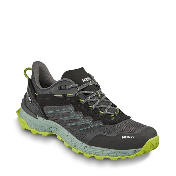 Deze Meindl Jamaica GTX (artikelnummer 4751-01) is een sportieve en multifunctionele wandelschoen voor heren, ontworpen voor wie houdt van comfort en prestatie tijdens lichte wandelingen of dagelijks gebruik. De schoen valt direct op door zijn dynamische kleurgebruik en technische afwerking.Hier zijn de belangrijkste kenmerken van dit model: Design & BeschermingGORE-TEX Voering: Dankzij het geïntegreerde GORE-TEX membraan is de schoen volledig waterdicht en toch optimaal ademend, waardoor je voeten droog blijven onder alle weersomstandigheden.Materiaalmix: Het bovenwerk is opgebouwd uit een combinatie van ademend mesh en stevig synthetisch materiaal voor een goede balans tussen ventilatie en duurzaamheid.Sportieve Uitstraling: De schoen is uitgevoerd in een moderne zwart-grijze basis met opvallende neon-groene (lime) accenten in de zool en details.Grip & ComfortGedempte Tussenzool: De lichtgrijze tussenzool met 'spikkel'-effect biedt uitstekende schokabsorptie, wat het loopcomfort op verharde en onverharde paden vergroot.Gripvaste Profielzool: De heldere neon-groene loopzool is voorzien van een grof profiel voor maximale grip op diverse ondergronden.Hielondersteuning: De verstevigde hielkap zorgt voor extra stabiliteit tijdens het afwikkelen van de voet.DetailsVetersluiting: Voorzien van een nauwkeurig vetersysteem met tweekleurige veters voor een perfecte aansluiting op de wreef.Handige Lus: De lus aan de hiel vergemakkelijkt het aan- en uittrekken van de schoen. Ideaal voor: Lichte bergwandelingen, boswandelingen of als stevige vrijetijdsschoen voor dagelijks gebruik.