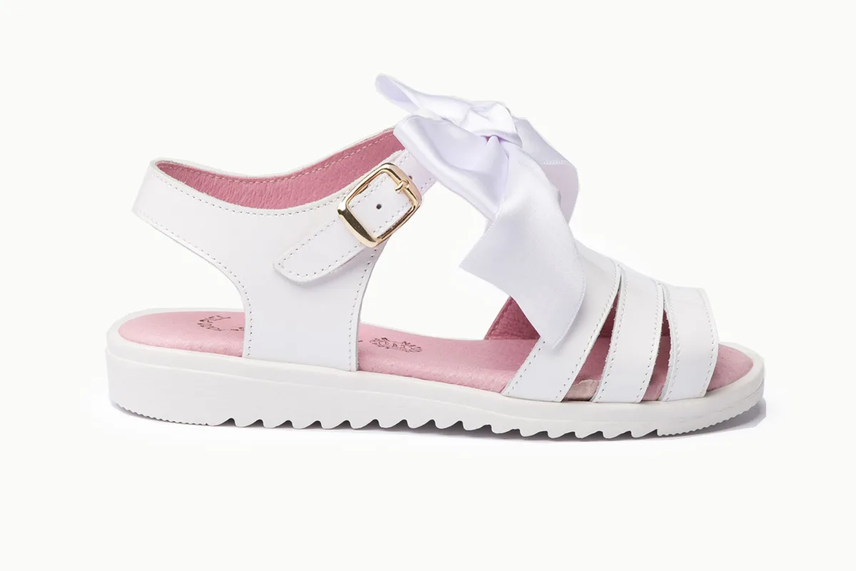 Verfijnde, zachte en flexibele sandalen. Sandaalachtige schoen van rundernappaleer met strikversiering op de bovenkant en gespsluiting. De binnenkant is gemaakt van een voering van natuurlijk leer, een binnenzool met anatomische brug en een antislip rubberen zool. Schoenen ontworpen en vervaardigd in Spanje.