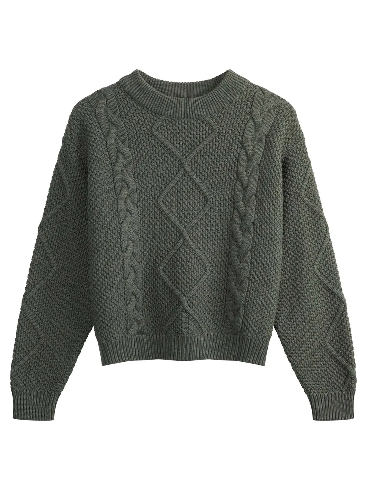 Design: Geribd ceintuurtje, Vlecht brei; Materiaal: Knitwear; Halstype: Ronde hals; Motief: Effen; Extra's: Met textuur, Fair Trade (USA); Pasvorm: Losse pasvorm; Armlengte: Lange mouw; Lengte: Normale lengte