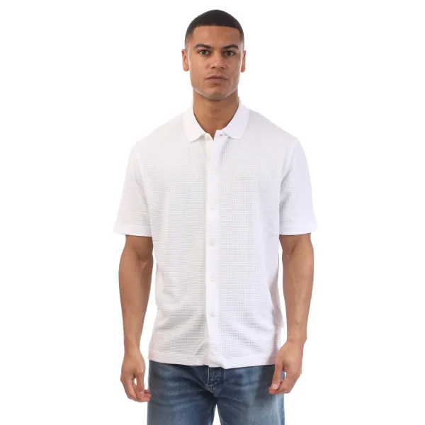 Men’s Boss C-Palladio 120 Waffle Cotton Shirt in White