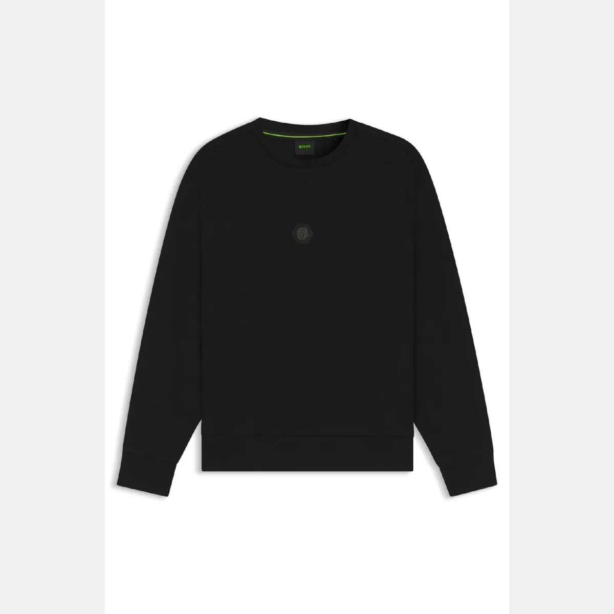 Mens BOSS CN Future Cotton Blend Sweatshirt with Double B Monogram in blackIdeal for everyday wear this relaxed-fit BOSS Menswear sweatshirt features a hexagonal Double B monogram patch. Ultimate comfort.- Relaxed fit- Crew neck- Long sleeves- Self fabric cuffs- Standard length- 77% Cotton 23% Polyester. Machine washable.- Ref: 50543859-001