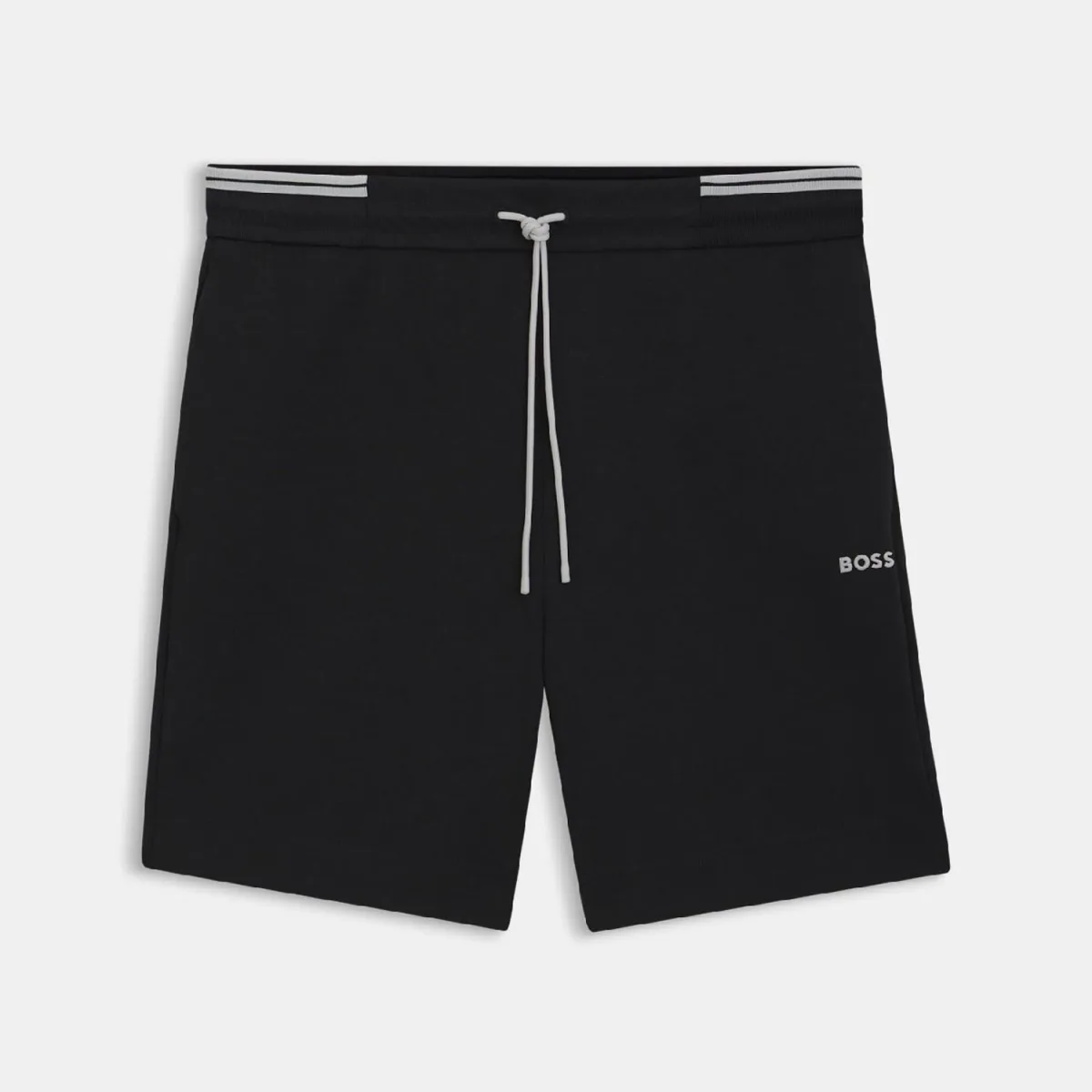 Mens BOSS Zone Stripe Detail Shorts in a Cotton Blend in blackIn a stretchy cotton blend with a moulded logo these BOSS Menswear shorts are an easy casual option. Straight fit. Stripe-detail waistband. – Regular fit- Regular rise- Drawstring- Side pockets- Rear welt pocket- Main material: 62% Cotton 33% Polyester 5% Elastane. Pocketing: 100% Polyester. Machine washable- Ref: 50543091-001