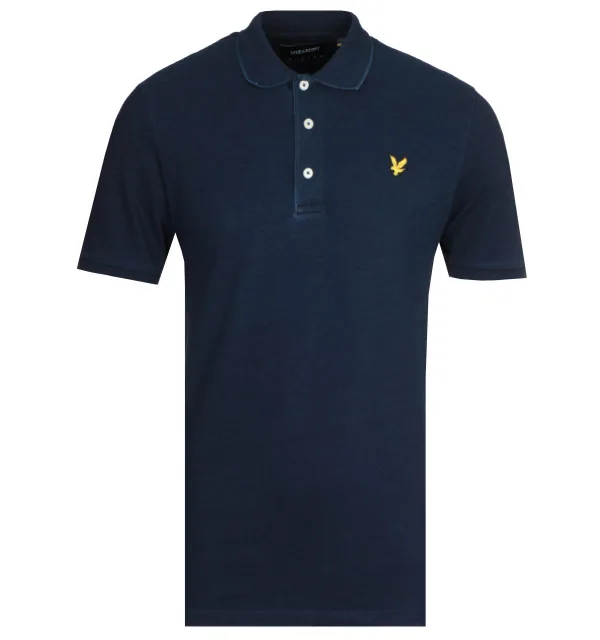 Mens Lyle And Scott Indigo Polo Shirt in blue. - Ribbed polo collar. - Ribbed cuffs and collar. - Three button placket with branded buttons. - Straight hem. - Embroidered eagle logo at left chest. - 100% Cotton. Machine washable. - Ref: SP1216V265