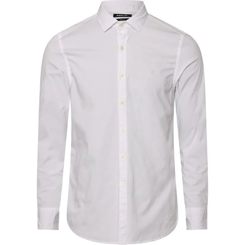 Mens Replay Long Sleeve Shirt in white.- Button-down collar.- Long sleeves with button cuffs.- Full button fastening.- Curved hem.- Slim fit.- 97% Cotton 3% Elastane.- Ref: M402880279A001