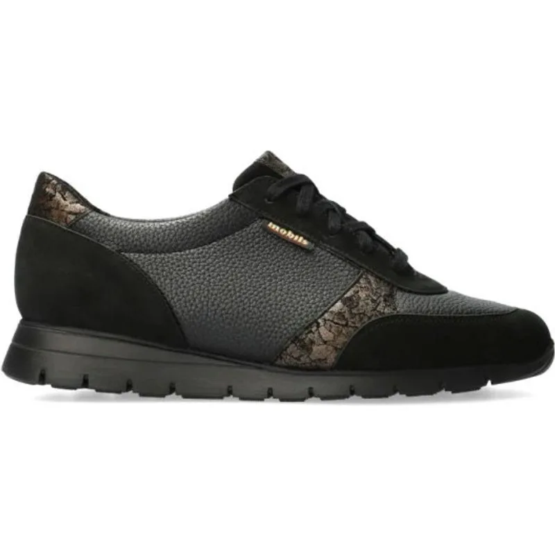 Deze casual ogende sneaker biedt optimaal comfort en pasvorm. De uitneembare binnenzool, met geïntegreerde SOFT-AIR technologie, en de buitenzool, uitgerust met SHOCK-ABSORBER, minimaliseren de impact en garanderen een moeiteloze wandeling met een veerkrachtige stap. Een van de bijzonderheden van MOBILS schoenen is hun zachte en comfortabele INTEGRAL CUSHIONING. Het vetersysteem maakt een snelle sluiting mogelijk zonder druk, en past zich perfect aan de anatomie van de voet aan. De leren voering creëert een gezond klimaat in de schoen.