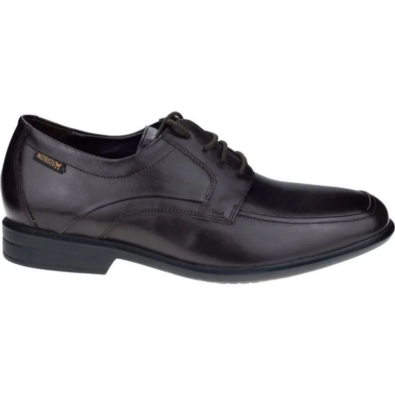 Mephisto ELIOT is een nette veterschoen gemaakt van donkerbruin zacht leer. Voering is leer. Uitneembare binnenzool is voorzien van Air-System. Rubberen zool is voorzien van schokdemping en Soft-Air systeem. Een heerlijk zachte soepele schoen voor op het werk, voor gelegenheden of gewoon voor alledaags gebruik.