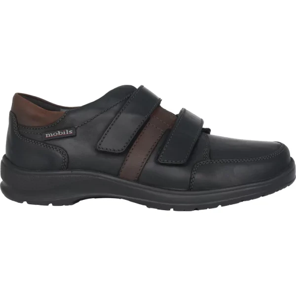 De comfortabele MOBILS herenschoen met 2 individueel verstelbare wreefriemen garandeert een perfecte pasvorm en het hoogste comfort. Het van nature zachte leer en de zachte demping zorgen ervoor dat de schoen perfect en gemakkelijk op zijn plaats blijft zitten. Het anatomisch gevormde voetbed is uitneembaar, de geïntegreerde Soft Air Technology en de schokdemper verminderen de harde impact van het lopen tot een minimum en zorgen voor een zachte en moeiteloze loopervaring.