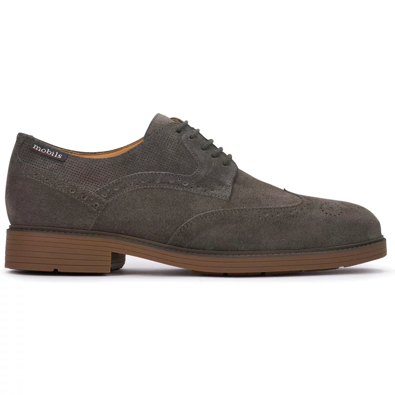 Uiterst comfortabele, nonchalante en elegante herenschoen, handgemaakt van hoogwaardig leer en geschikt voor zowel zakelijke als vrijetijdskleding. Opvallende details zijn de contrasterende leren hielkap in reptielenleer, de perforaties aan de zijkanten en het broguepatroon van een klassieke Budapest-schoen. Samen met de sterke, schokabsorberende zool accentueren ze de trendy look van deze derby. De innovatieve zooltechnologie MOBILS AIR-BAG SYSTEM zet nieuwe maatstaven op het gebied van grondprestaties en schokabsorptie voor hardlopers. In tegenstelling tot conventionele zolen is het gehele profiel van ons AIR-BAG SYSTEM voorzien van kleine flexibele cilinders aan de binnenkant. Deze cilinders buigen en comprimeren afzonderlijk om de harde impact van je voeten tijdens het hardlopen te absorberen en eventuele oneffenheden te compenseren. Dit verdeelt de druk gelijkmatig, zorgt voor een zachte en zekere stap en geeft je het gevoel alsof je op een luchtkussen loopt. Dankzij de SOFT-AIR-TECHNOLOGIE van MOBILS behoren pijnlijke voeten tot het verleden. De SOFT-AIR tussenzool minimaliseert de schokken bij het lopen. Het beschermt je voeten, ontlast je gewrichten, verzorgt je rug en bevordert een gezond milieu in je schoenen. Maximale hielbescherming wordt bereikt door de SHOCK ABSORBER