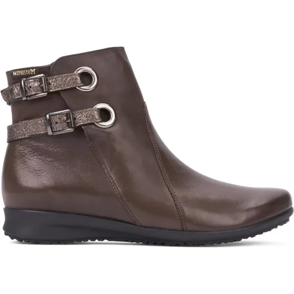Een zijdelingse ritssluiting maakt de in- en uitstap gemakkelijker. Geraffineerd detail van deze casual enkellaarsjes voor dames zijn de twee riempjes over de hiel met ieder een sluitbare gesp. De SOFT-AIR tussenzool, die in iedere Mephisto schoen verwerkt is, vangt moeiteloos alle schokken op tijdens het lopen en verzekert u van een perfect voetklimaat. Voeten, gewrichten en wervels worden optimaal beschermd en ontlast. Voor een moeiteloos loopplezier. Een maximale bescherming van de hiel door de schokdemper. Uitneembaar voetbed ook voor individuele inlegzolen. De zachte en warme binnenvoering zorgt op koude dagen voor draagcomfort.