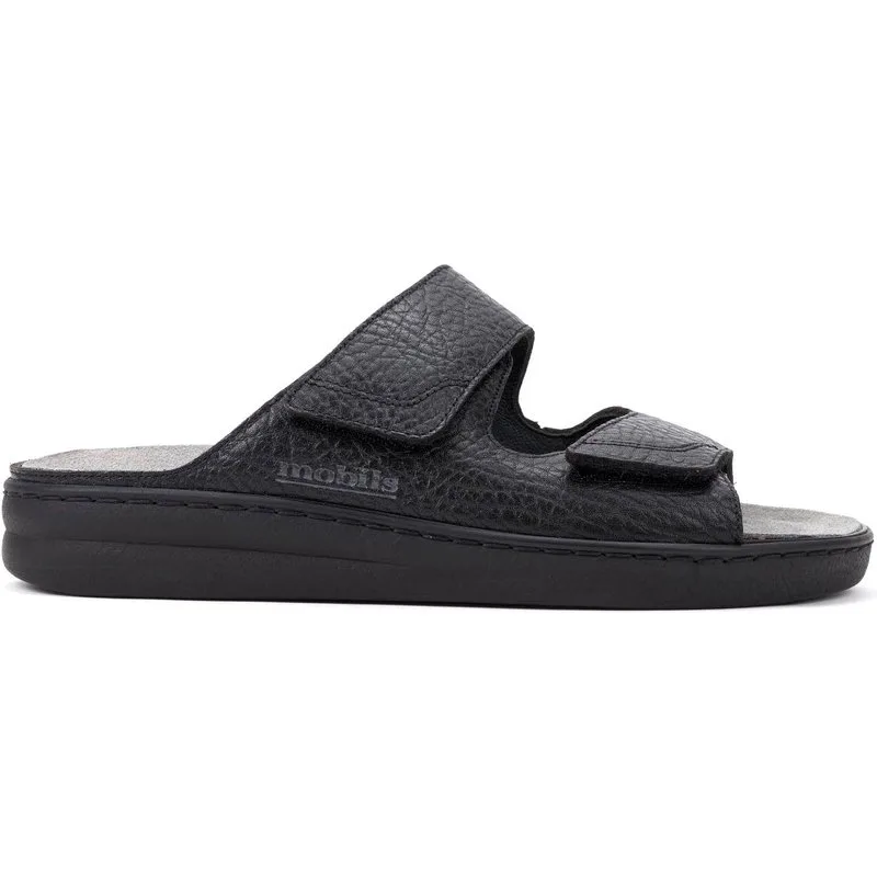 Deze MOBILS-pantolette voor heren, genaamd JAMES, met 2 klittenbandsluitingen overtuigt door superieur comfort: het comfortabele anatomisch gevormde en uitneembare voetbed van natuurkurk en de zachte vulling rondom zorgen voor een perfecte pasvorm zonder knellen. Deze pantolette is heerlijk licht en zorgt door de constructie voor optimale voethygiëne en welzijn. De geïntegreerde SOFT-AIR-technologie reduceert schokken tot een minimum en zorgt daardoor voor zacht en moeiteloos lopen.