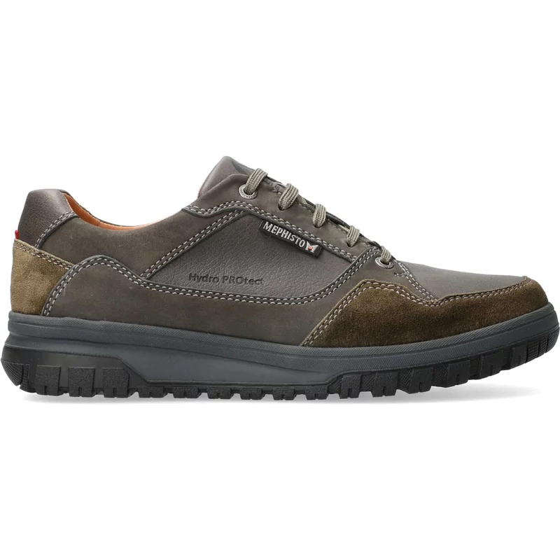 Deze MEPHISTO herensneaker ziet er ontspannen uit en heeft optimaal comfort voor veelzijdig gebruik. Hoewel deze schoen niet waterdicht is, is hij behandeld met Hydroprotect en biedt hij waterafstotend. Het uitneembare voetbed, met geïntegreerde SOFT-AIR TECHNOLOGIE, reduceert impact tot een absoluut minimum. De antislipzool van natuurlijk rubber en de schokdempers garanderen dat je stevig staat en zacht en stressvrij loopt.