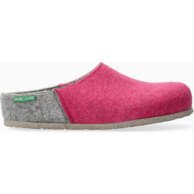 Dames Klompen - Vilt. Een super comfortabele, met de handgemaakte viltpantoffel met tweekleurig viltl als bovenmateriaal. Voor de inlegzool wordt uitsluitend chroomvrij leer gebruikt. Vermoeide voeten behoren dankzij de SOFT-AIR TECHNOLOGIE van MOBILS tot het verleden. De elastische en superzachte SOFT-AIR TUSSENZOOL vermindert schokken tot een absoluut minimum. Hierdoor worden de voeten beschermd, de gewrichten ontlast en de tussenwervelschijven ontzien. Samen zorgt dit voor een gezond voetklimaat. Het kurkvoetbed van Mephisto is uniek. De natuurlijke eigenschappen van kurk zijn ideaal om de voet een perfecte ondersteuning te bieden. De voetbogen worden ondersteund om doorzakking van de middenvoet te voorkomen. Schoenen en sandalen uit de serie NATURE IS FUTURE bestaan uit hoogwaardige natuurlijke materialen. De ULTRA LIGHT zool is extreem licht van gewicht, soepel en tevens zeer schokabsorberend.